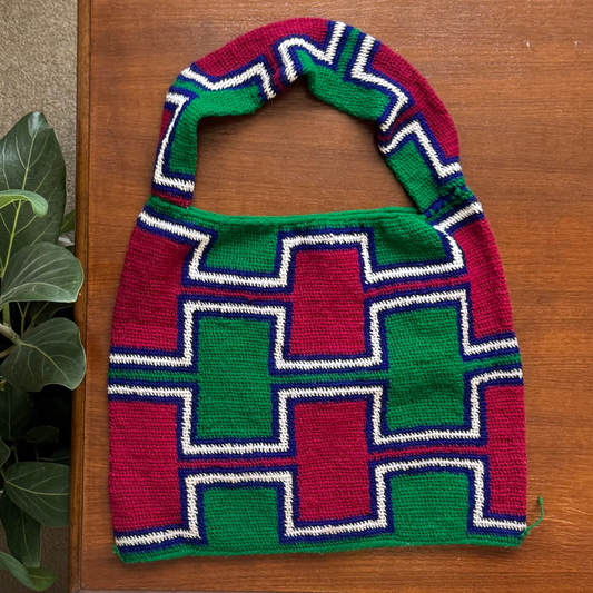 Grey Red Blue Fish Bone Bilum (Survivor-Made)