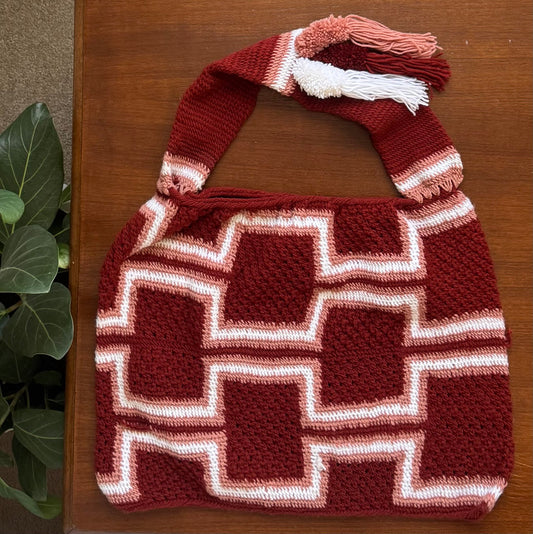 Rust Red and Pale Pink Skin Pik Bilum (Survivor-Made)